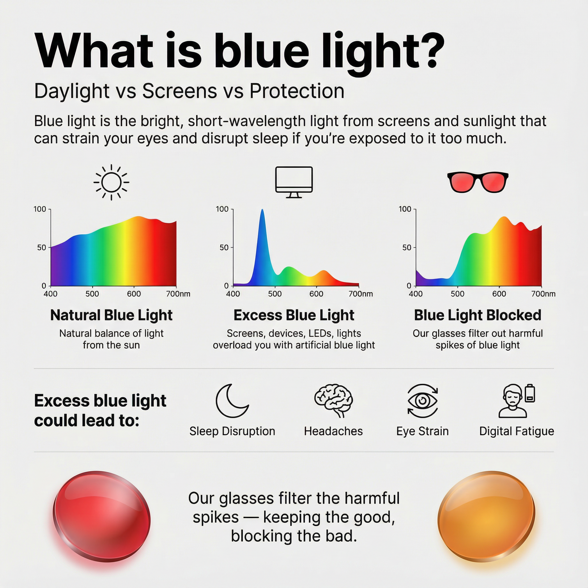 Block 99% of harmful blue light (vs 30% from clear lenses)